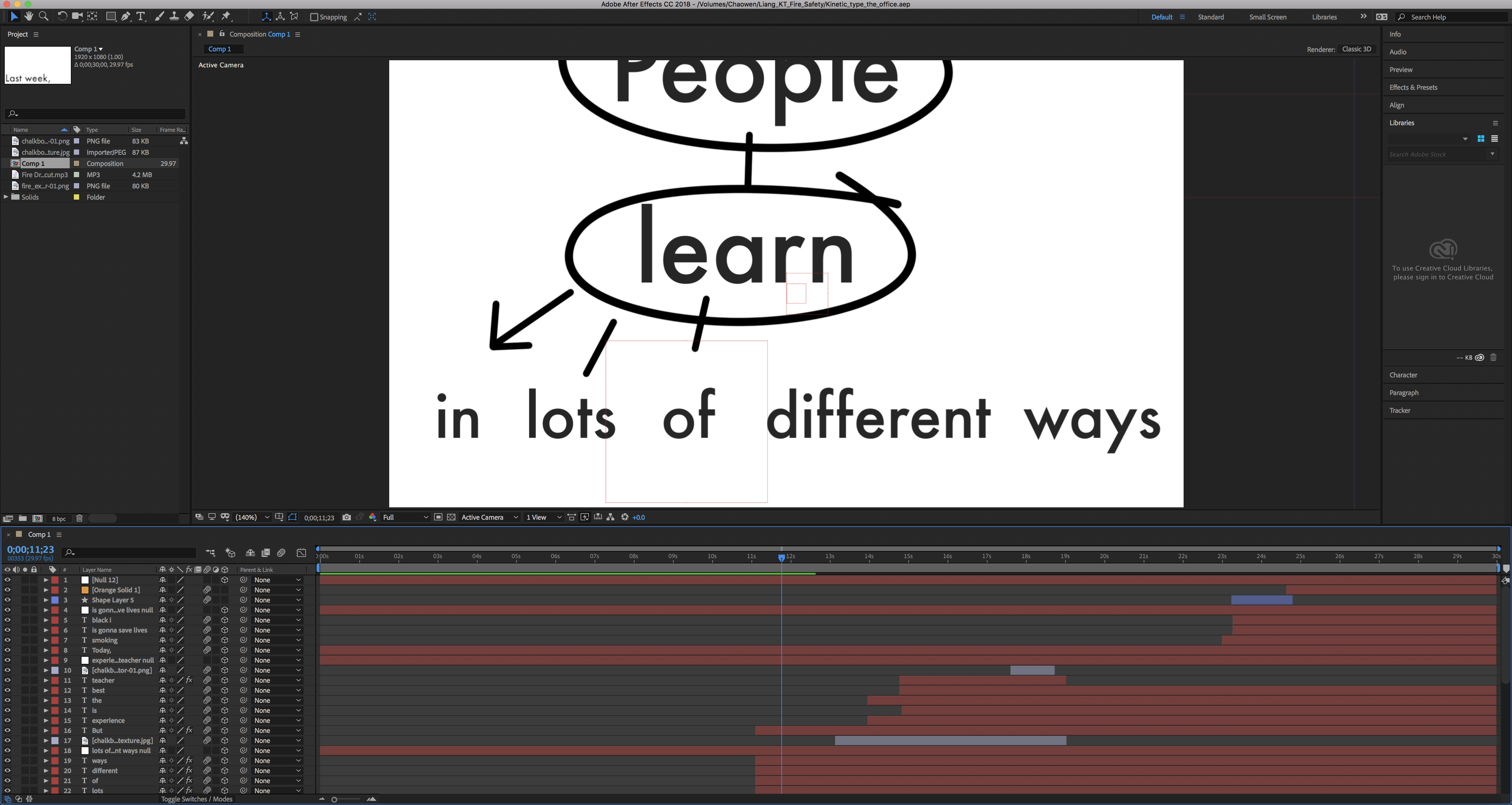 For this assignment, we were tasked in creating a 20 to 30 second kinetic type video in Adobe After Effects using the Sure Target tool. We were asked to use an audio quote from either our favorite movie or television show. Along with the audio footage, we were to use only text and a few illustrations to convey the quote.
